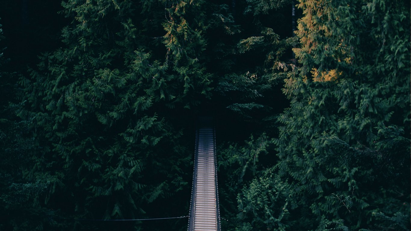 Обои: лес, деревья, зеленый, мост - 1366x768