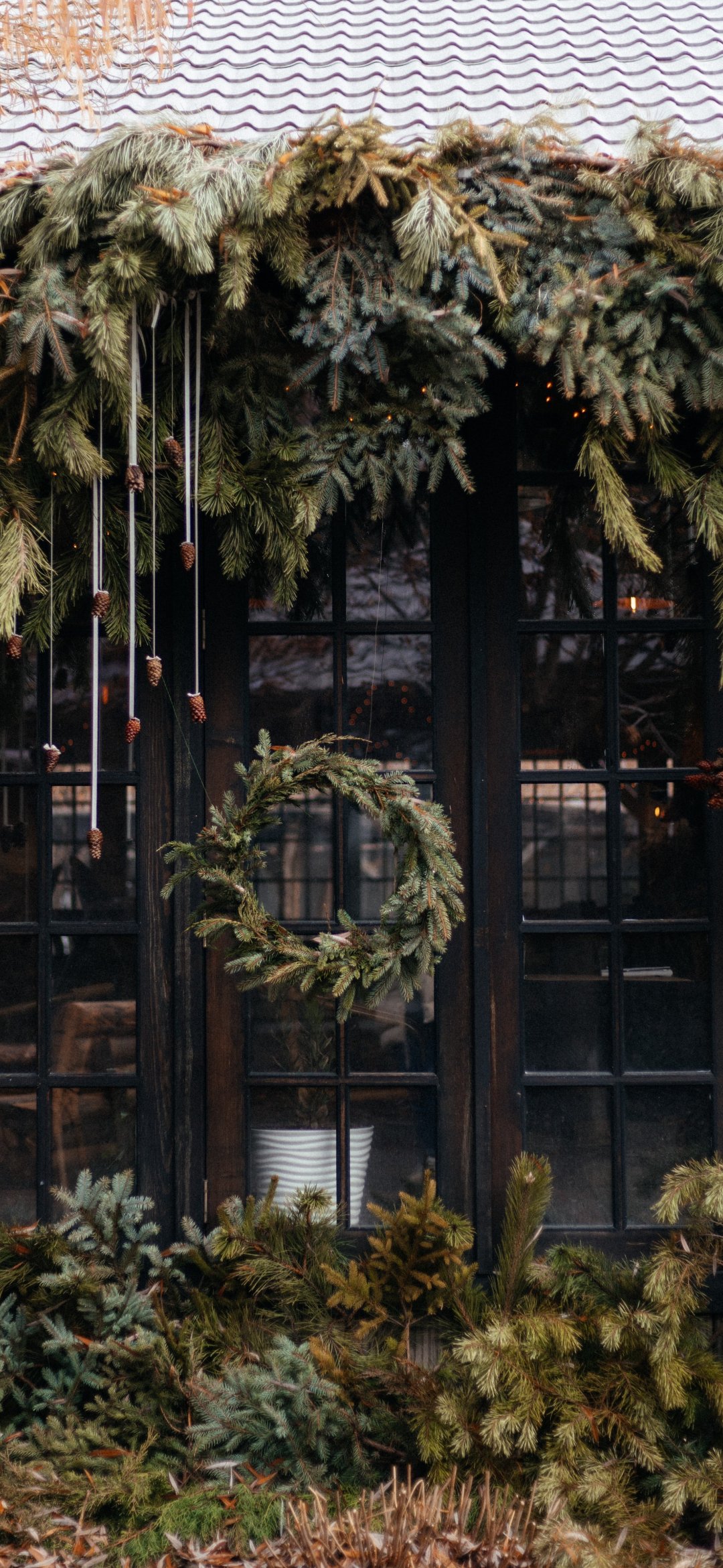 Обои: венок, хвойные ветки, рождество - 1080x2340