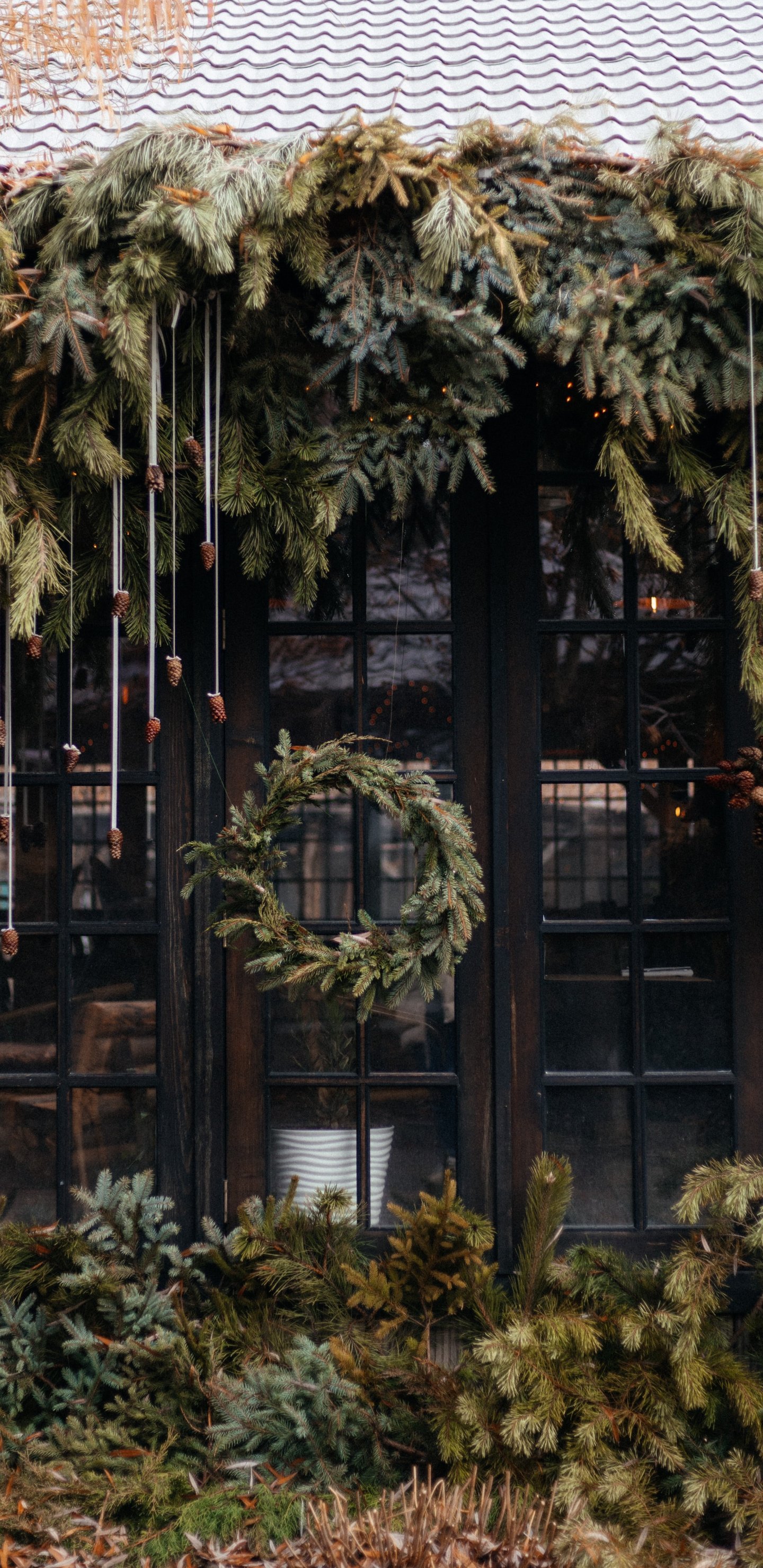 Обои: венок, хвойные ветки, рождество - 1440x2960