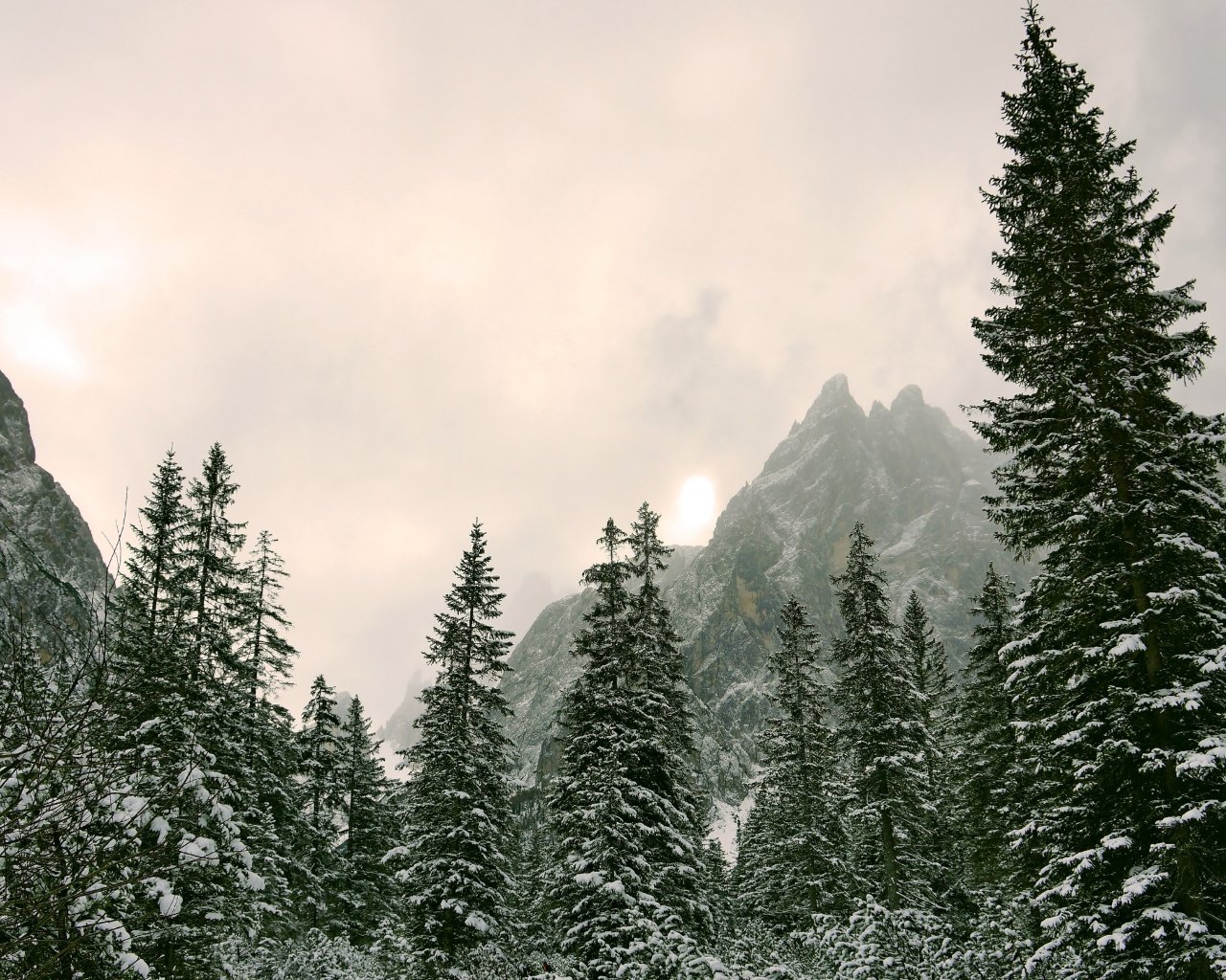 Обои: хвойный лес, горы, хвойные деревья - 1280x1024
