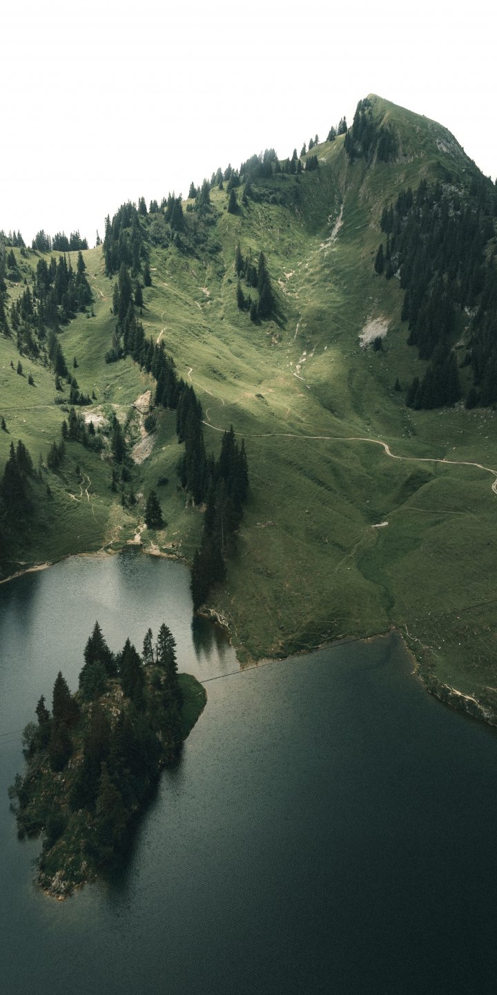 Обои: Швейцария, озеро, горы, зеленый - 720x1440