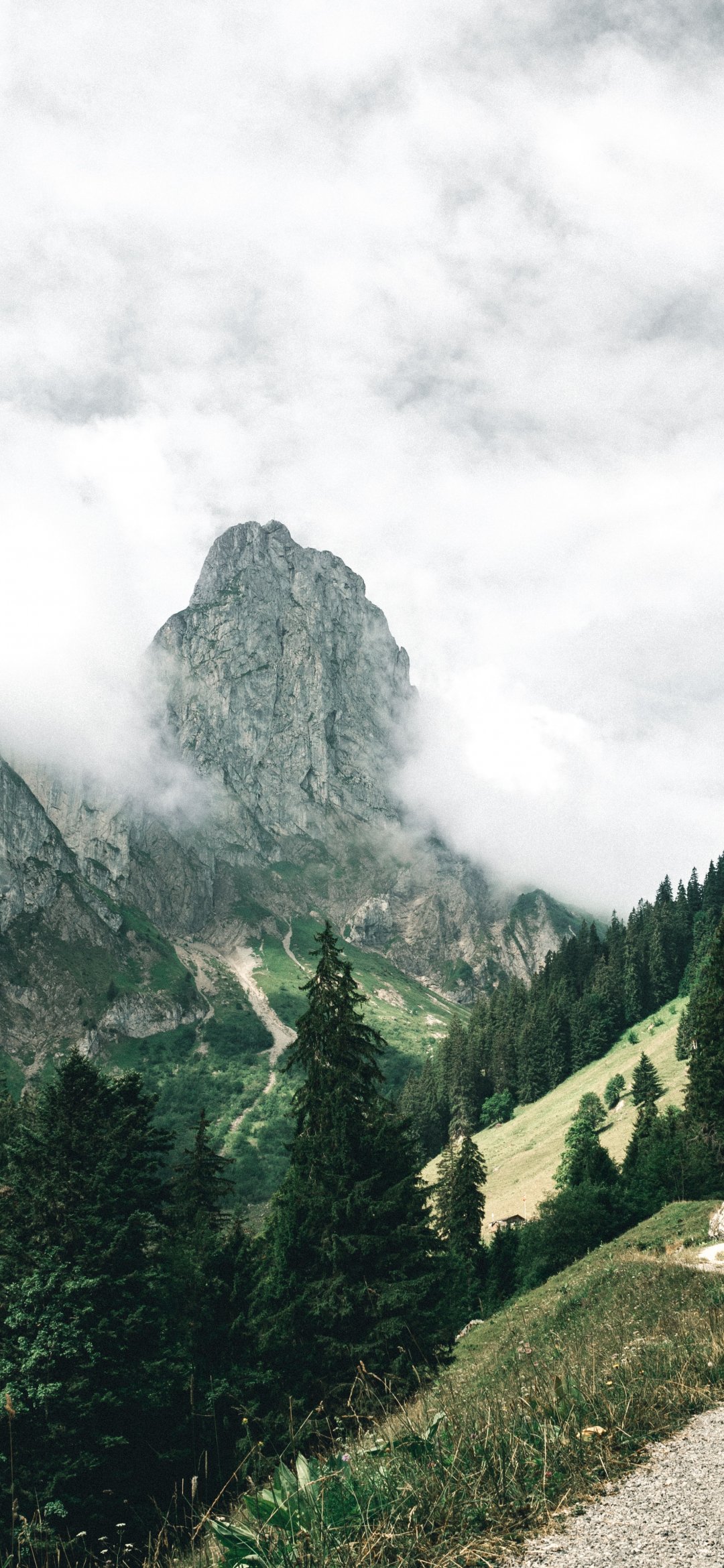 Обои: горы, лес, зеленый, облака - 1080x2340
