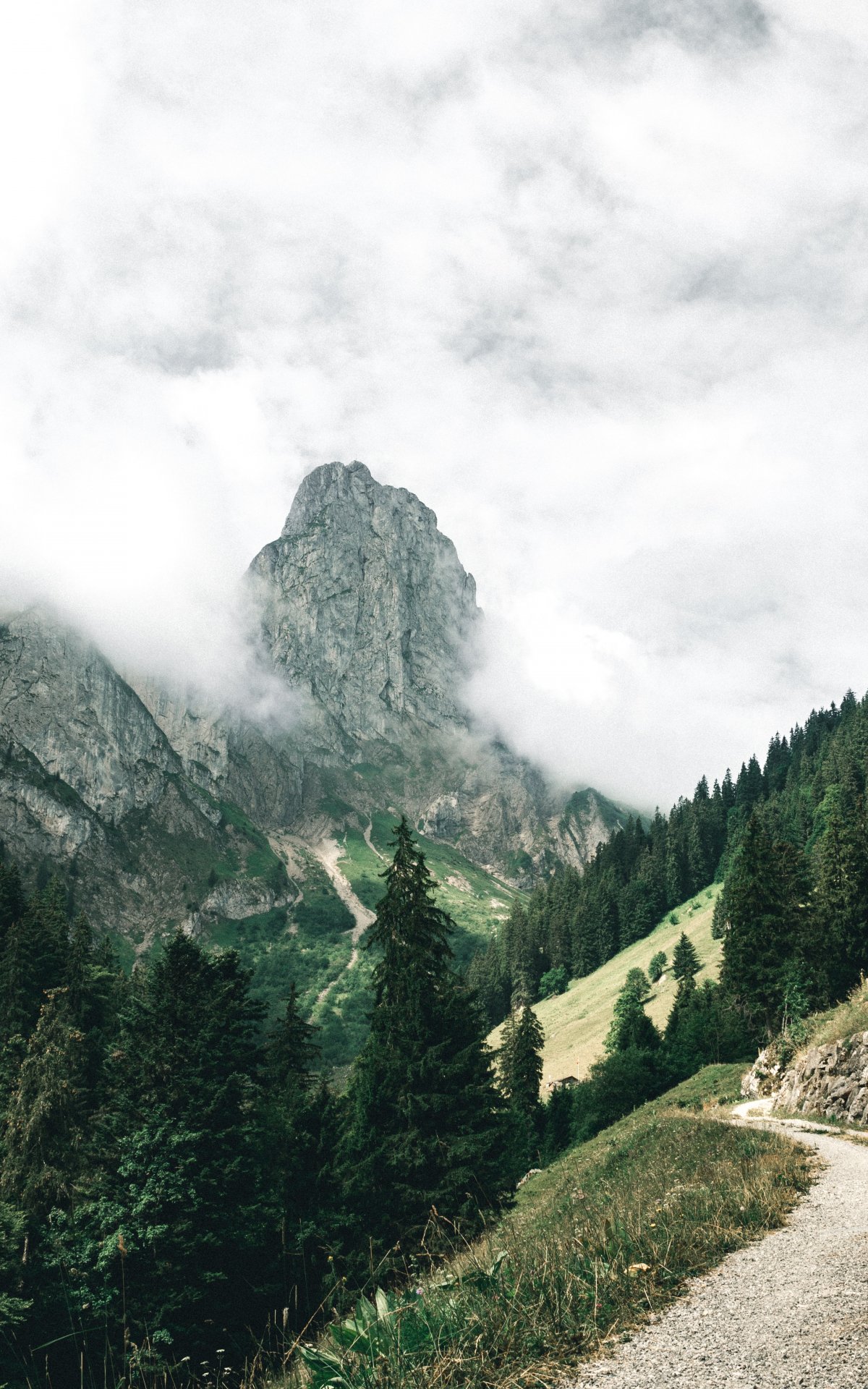 Обои: горы, лес, зеленый, облака - 1200x1920