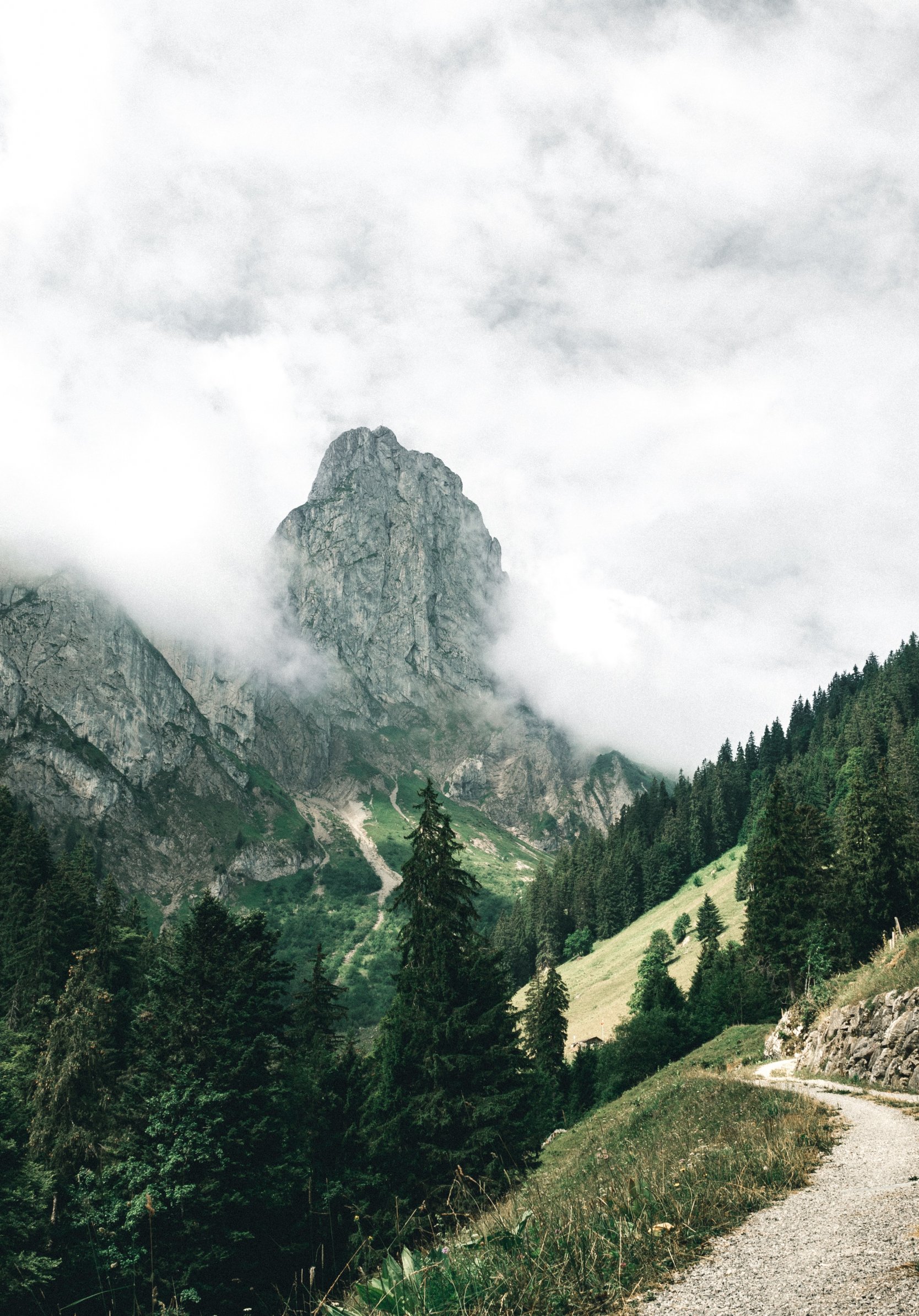 Обои: горы, лес, зеленый, облака - 1668x2388
