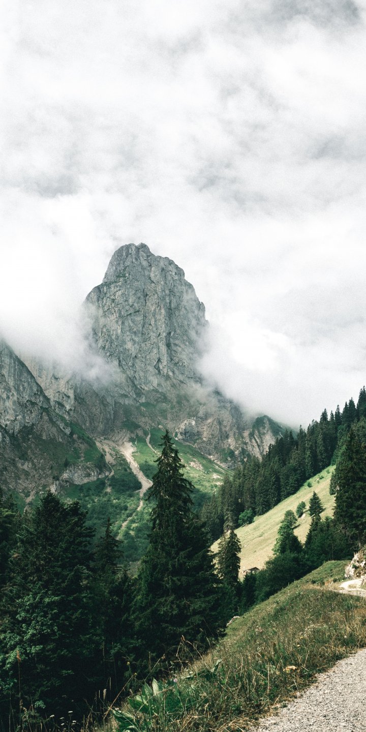 Обои: горы, лес, зеленый, облака - 720x1440
