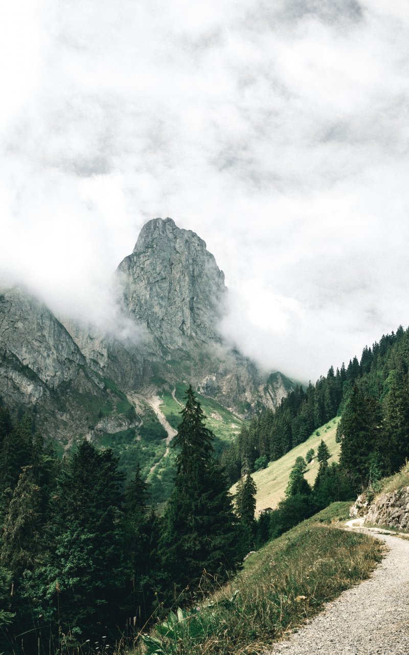 Обои: горы, лес, зеленый, облака - 800x1280