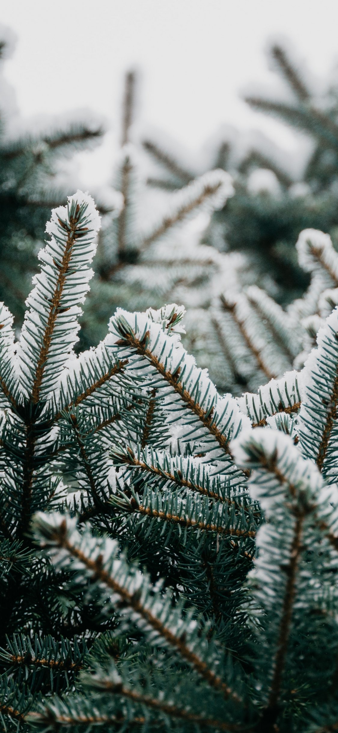 Обои: ель, ветки, снег - 1125x2436