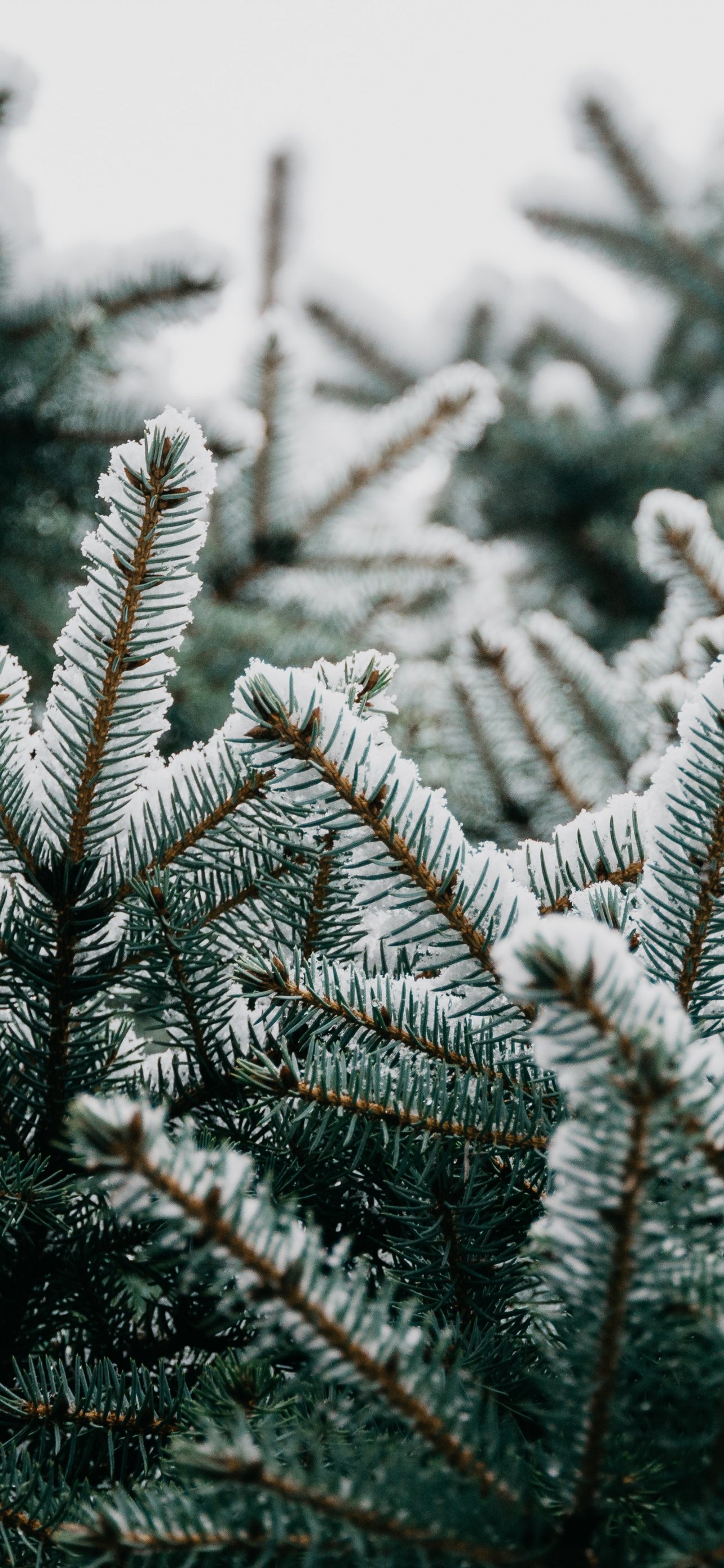 Обои: ель, ветки, снег - 1284x2778