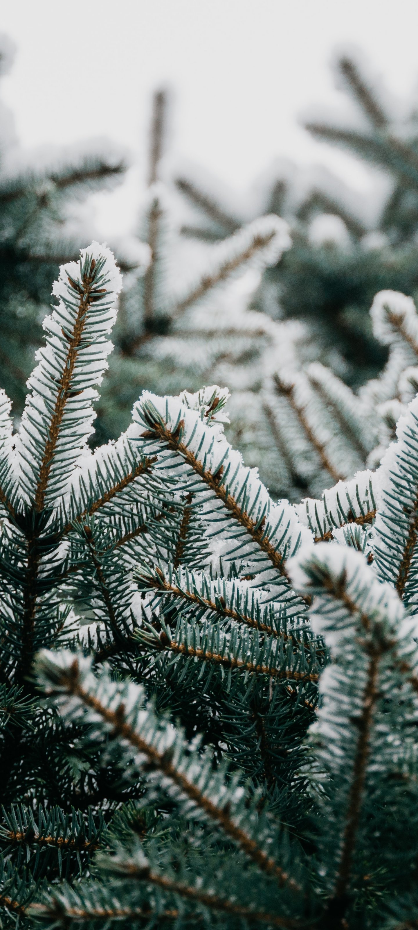 Обои: ель, ветки, снег - 1440x3200