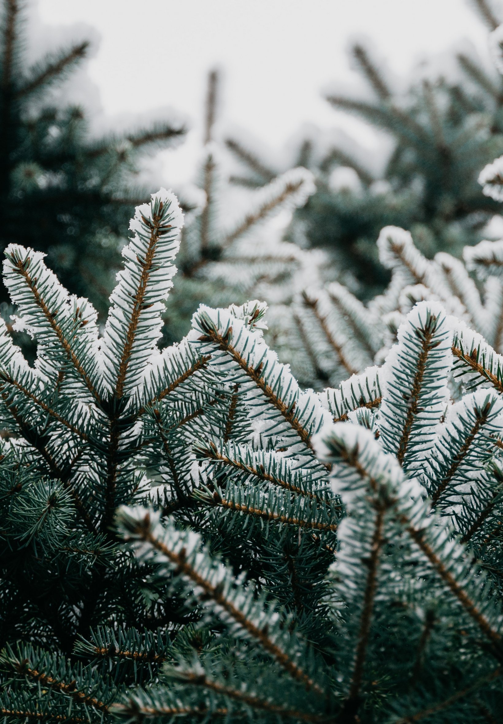 Обои: ель, ветки, снег - 1640x2360