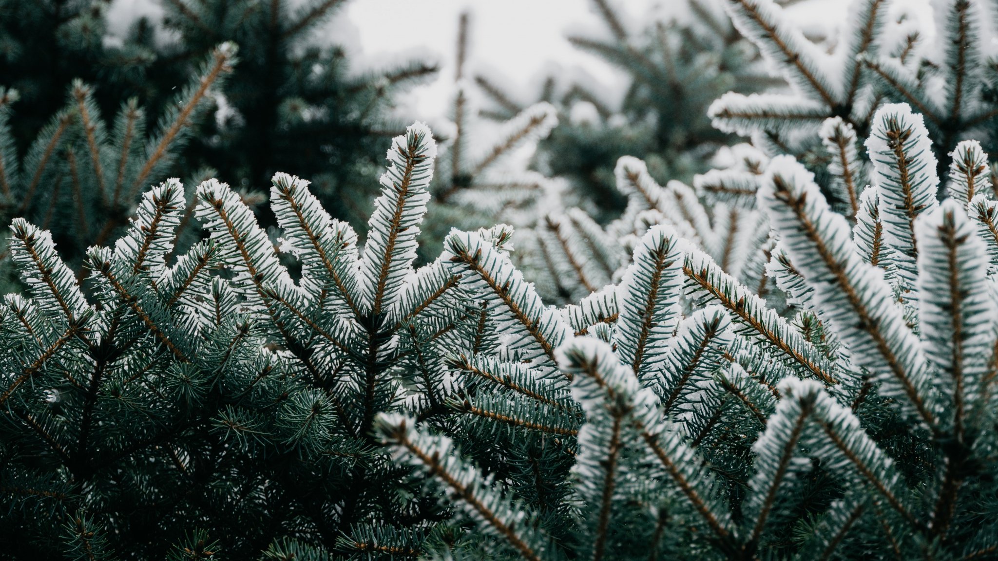 Обои: ель, ветки, снег - 2048x1152