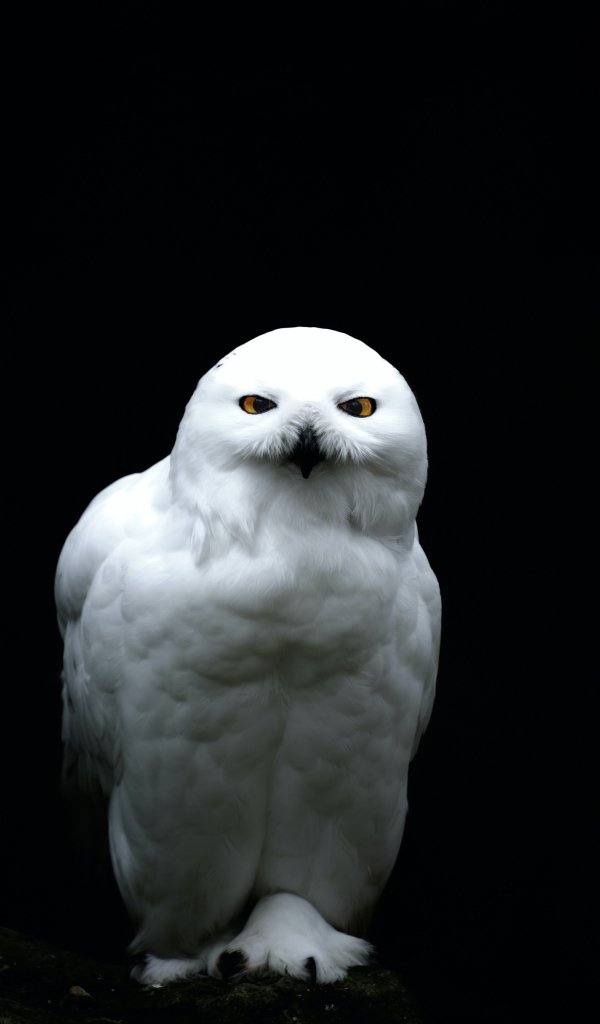 Обои: желтый глаза, сова, темный фон - 600x1024