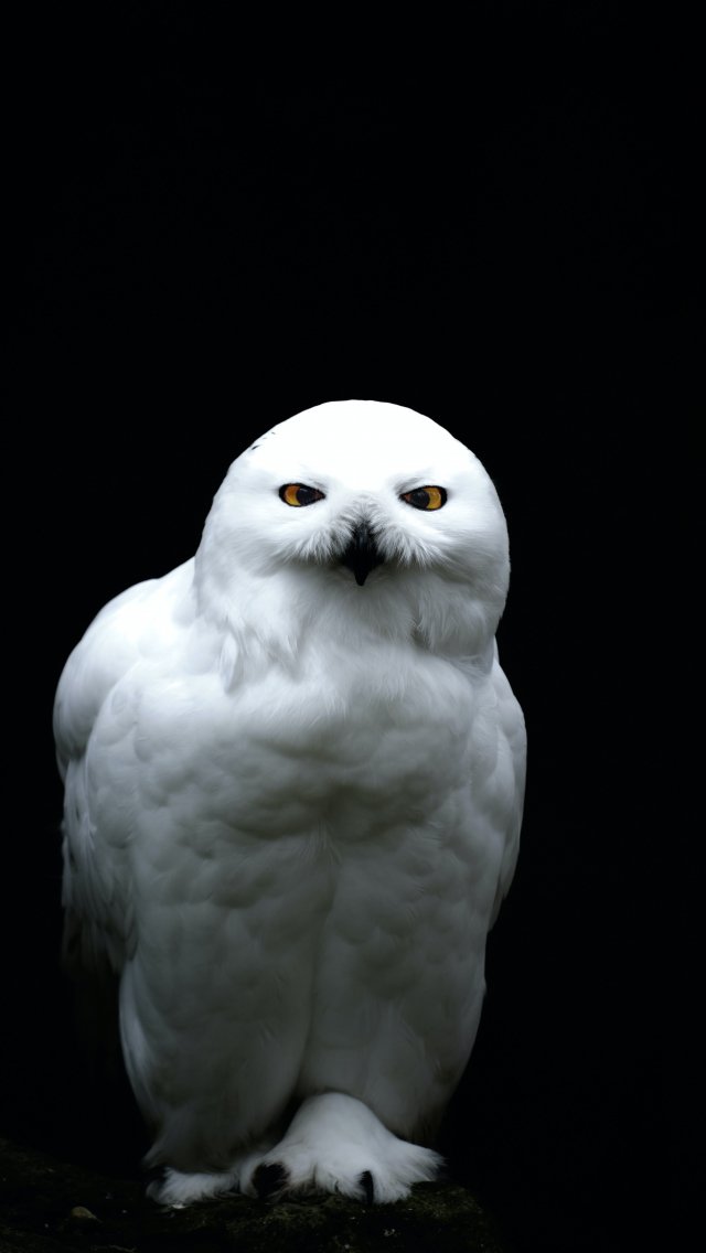 Обои: желтый глаза, сова, темный фон - 640x1136