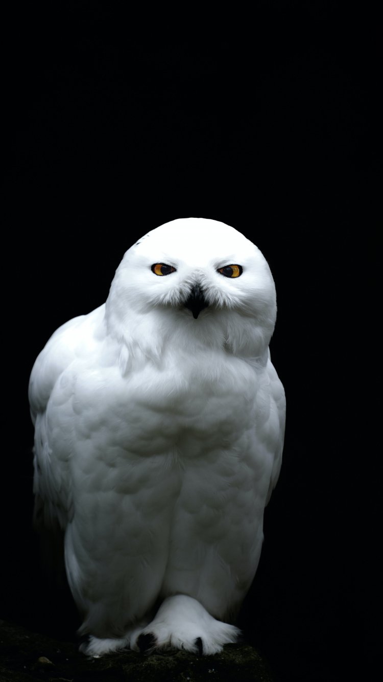 Обои: желтый глаза, сова, темный фон - 750x1334