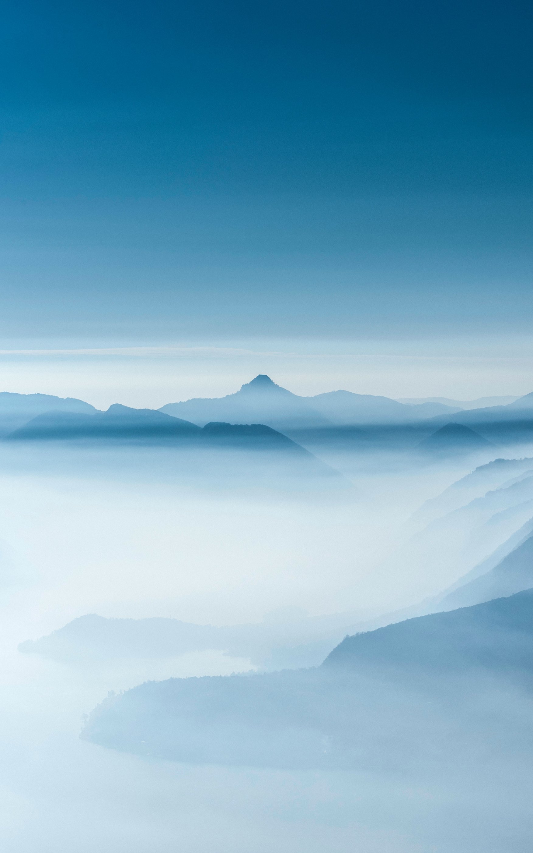 горный пейзаж, туман, голубой