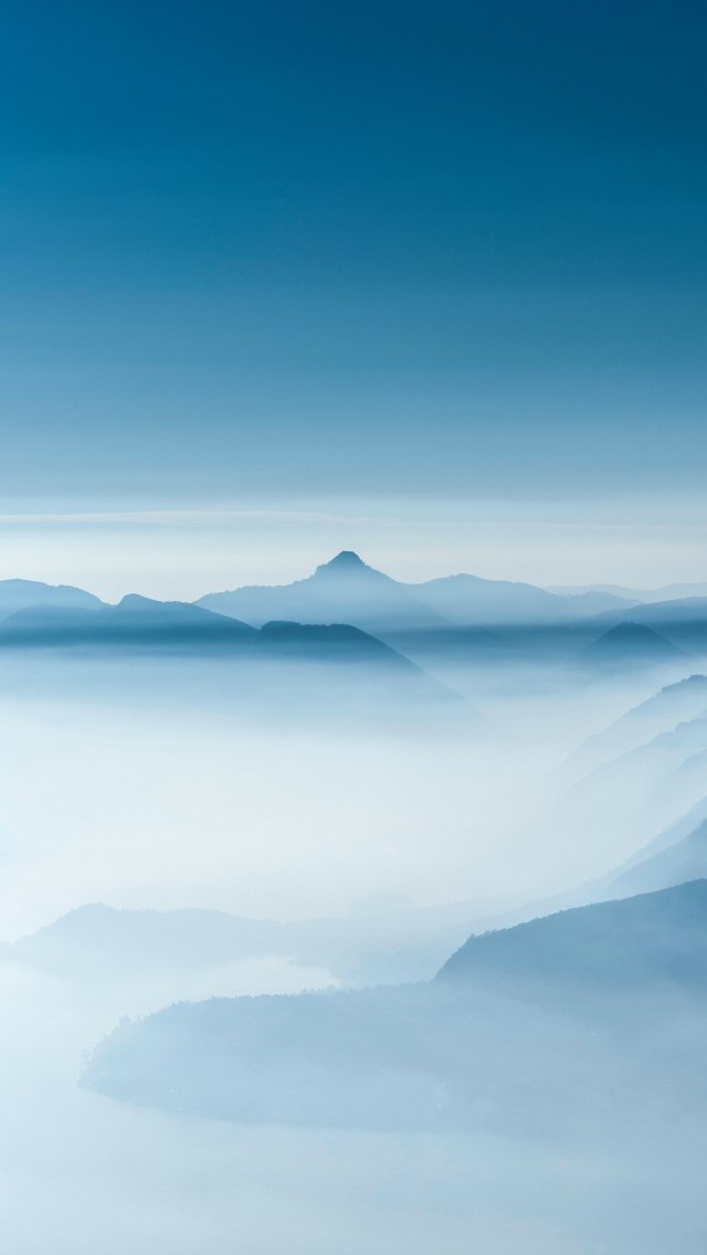 горный пейзаж, туман, голубой
