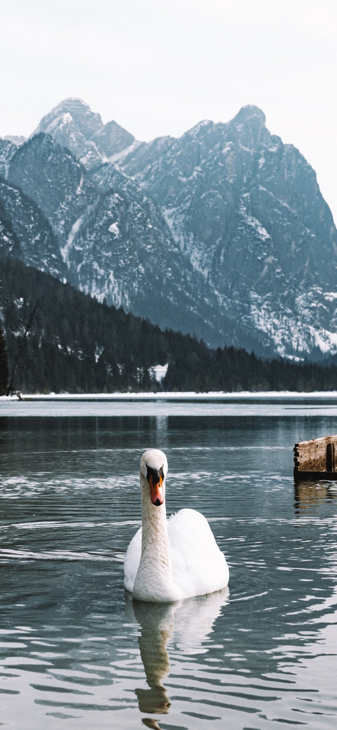 Обои: лебедь, озеро, горы - 1125x2436
