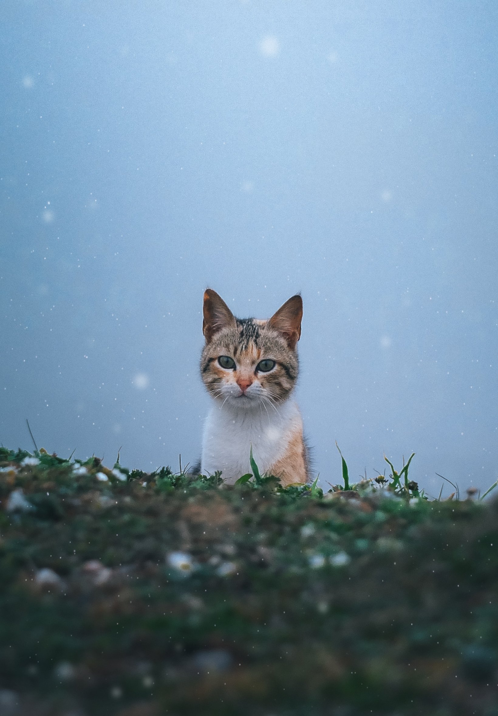 Обои: кошка, снег, трава - 1640x2360