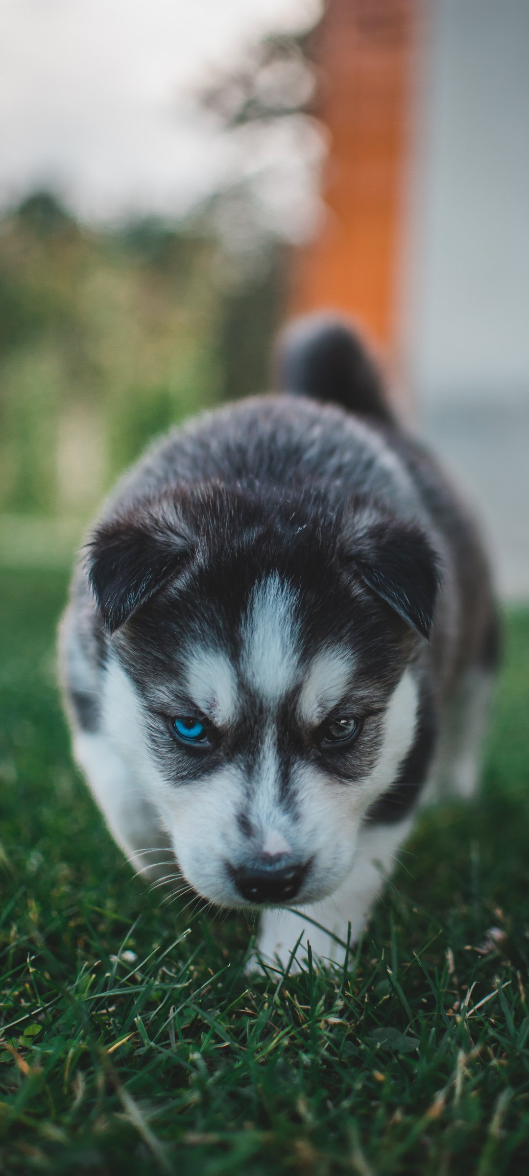 Обои: щенок, хаски, трава - 1080x2400