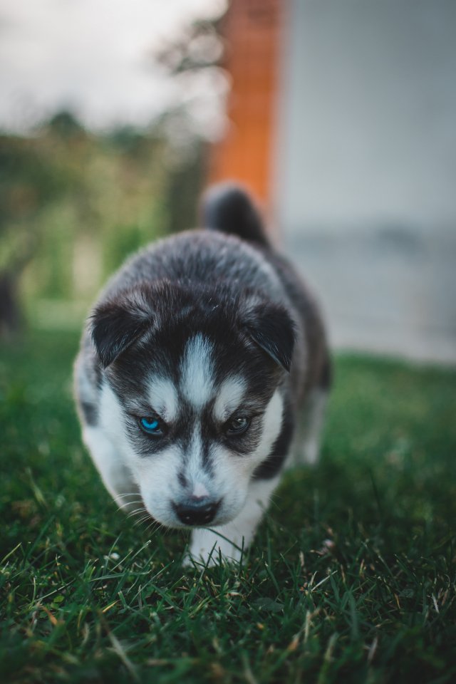 Обои: щенок, хаски, трава - 640x960