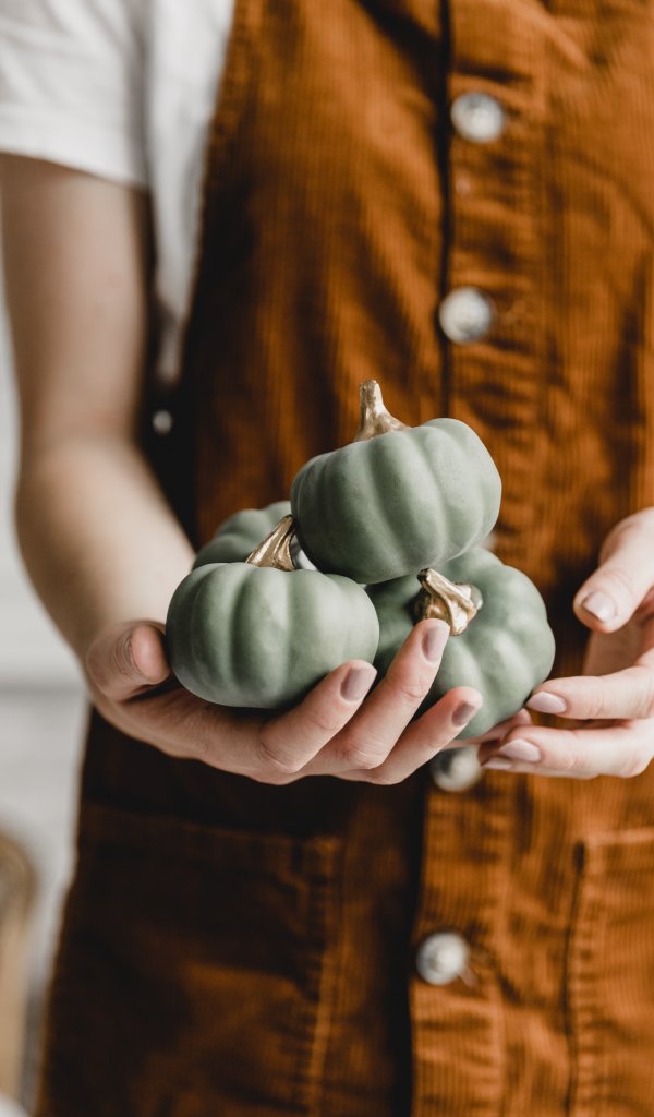 Обои: тыквы, девушка - 600x1024