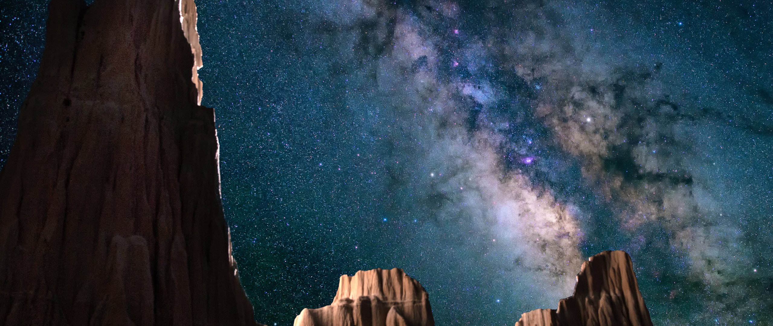 Обои: млечный путь, горы, ночь - 2560x1080