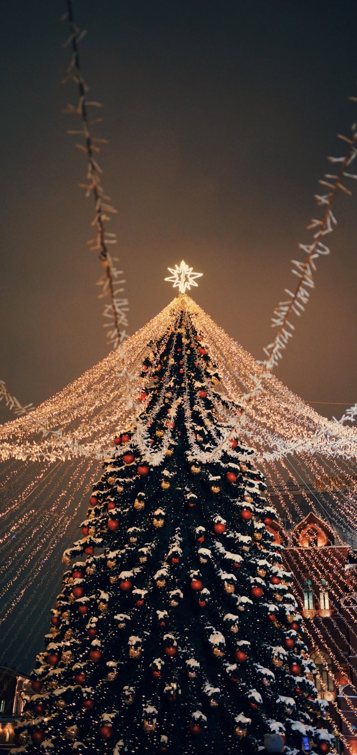 Обои: елка, праздничные огни - 720x1520