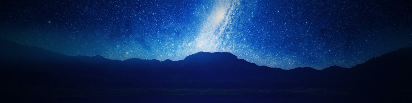 Обои: ночь, озеро, горы, вселенная - 1590x400