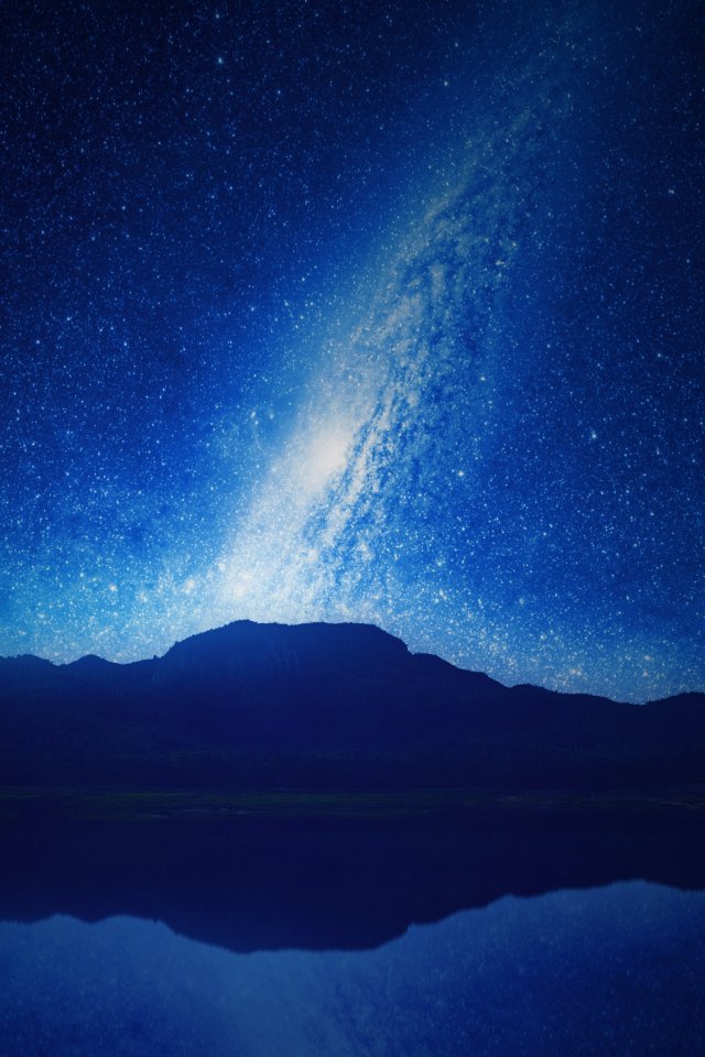 Обои: ночь, озеро, горы, вселенная - 640x960