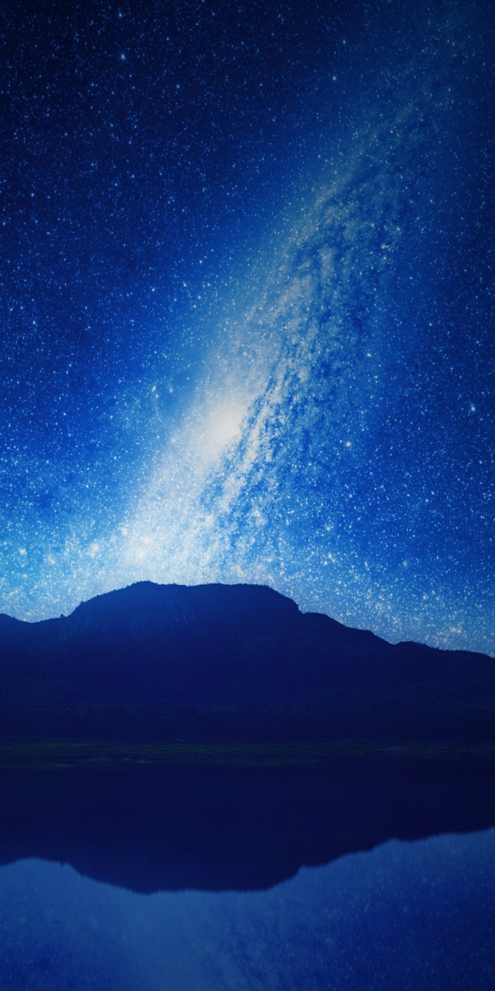 Обои: ночь, озеро, горы, вселенная - 720x1440