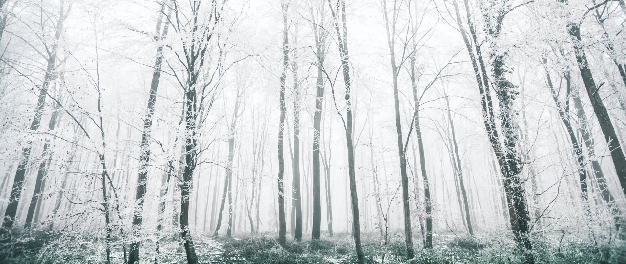 Обои: зимний лес, деревья - 2560x1080