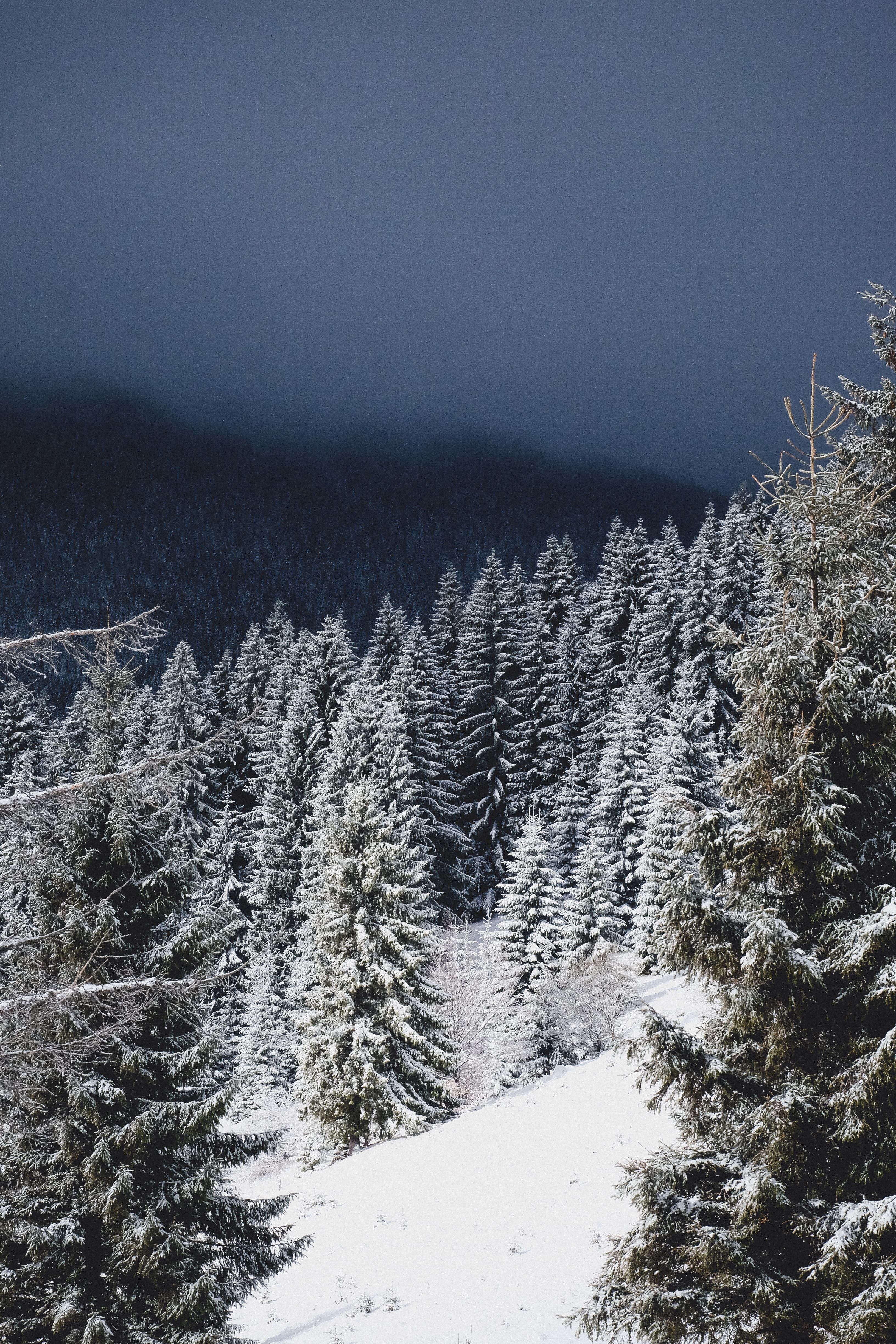 Обои: зимний лес, хвойный лес - 3264x4896