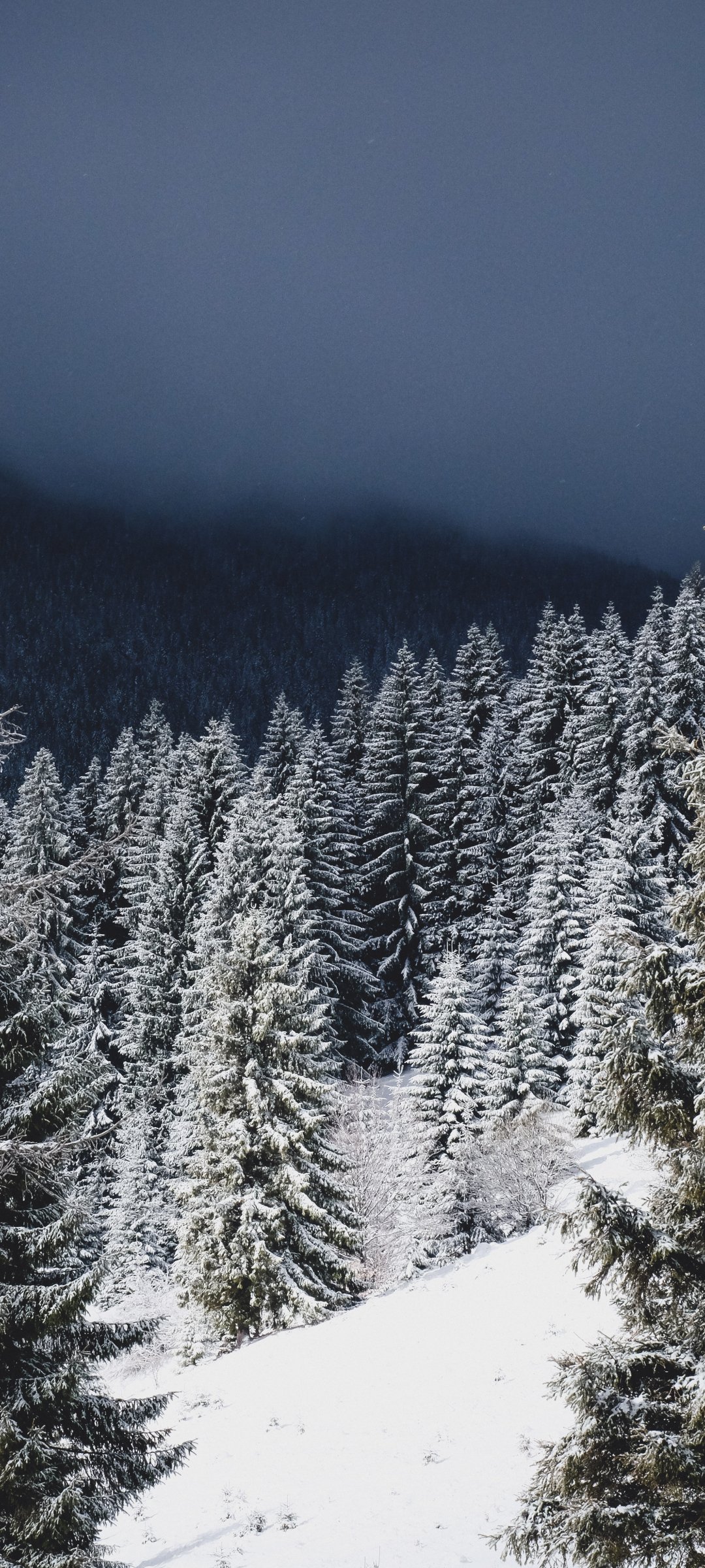 Обои: зимний лес, хвойный лес - 1080x2400
