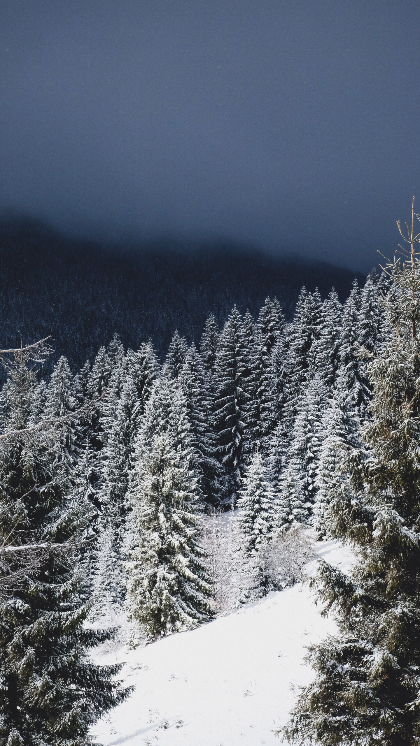 Обои: зимний лес, хвойный лес - 1440x2560