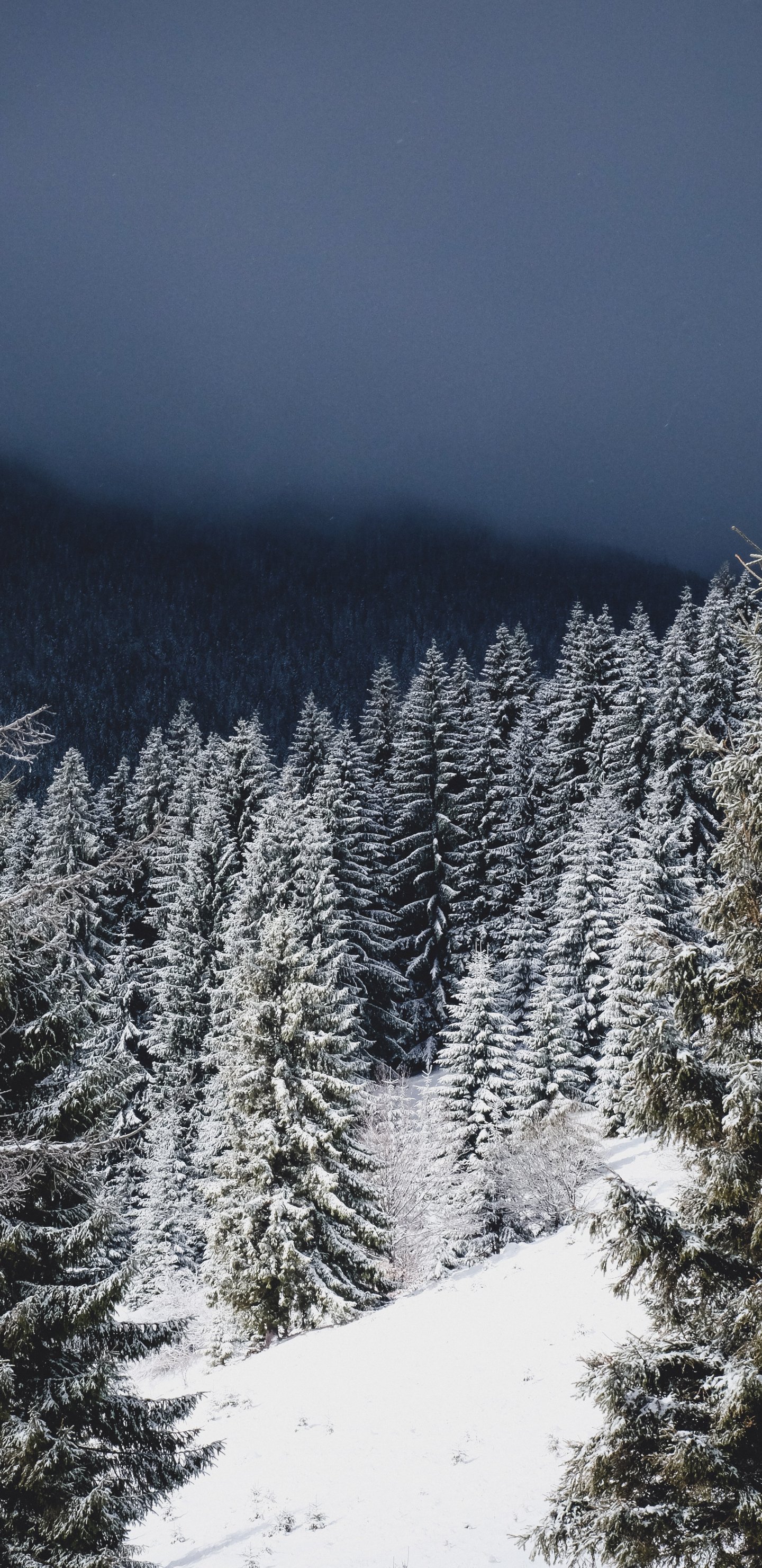 Обои: зимний лес, хвойный лес - 1440x2960