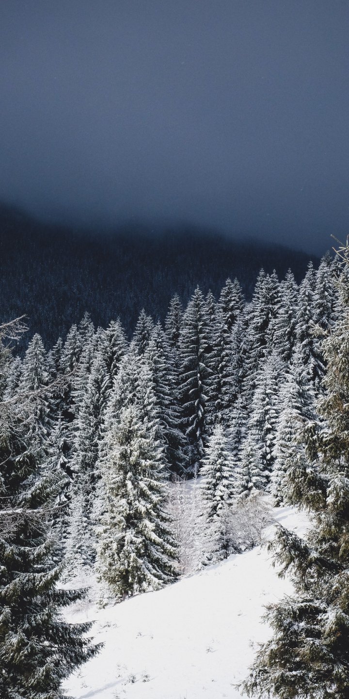 Обои: зимний лес, хвойный лес - 720x1440