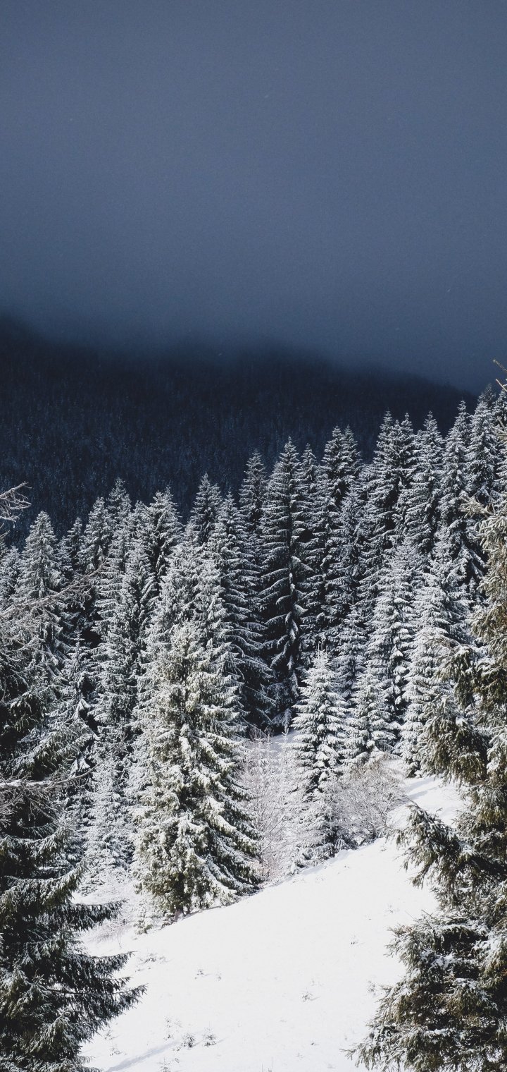 Обои: зимний лес, хвойный лес - 720x1520