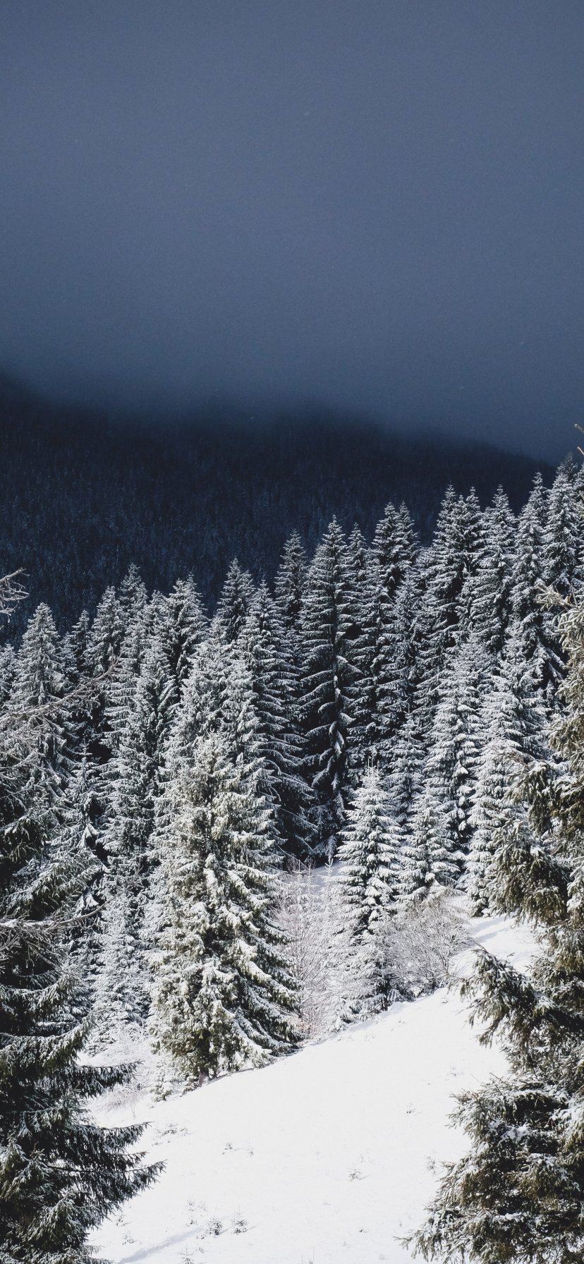 Обои: зимний лес, хвойный лес - 828x1792