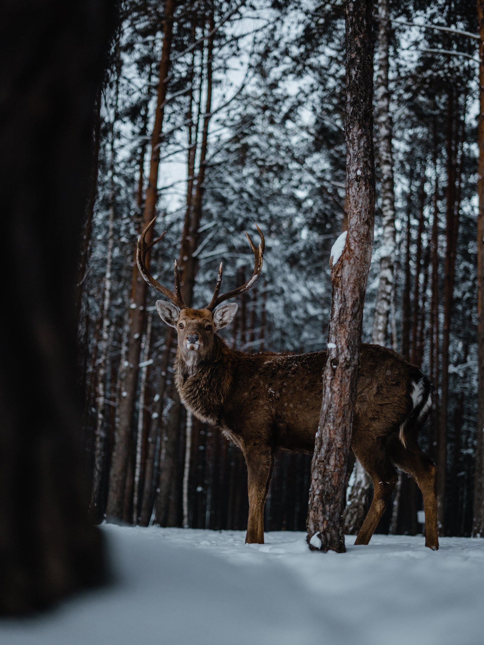 Обои: олень, лес, зима - 1620x2160