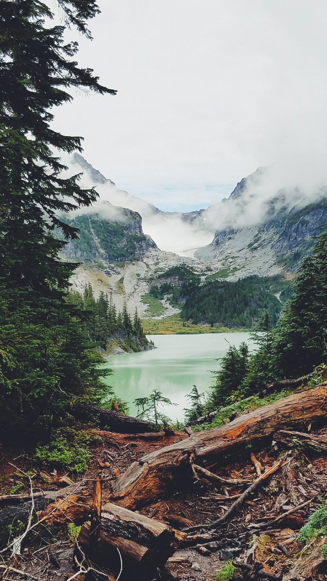 Обои: горы, лес, озеро, облака - 1080x1920