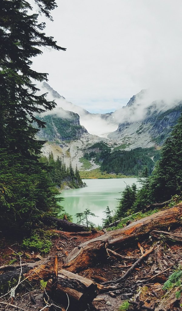 Обои: горы, лес, озеро, облака - 600x1024