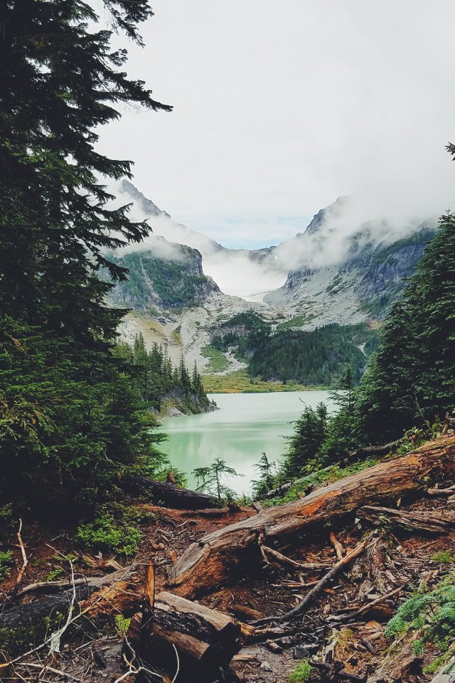 Обои: горы, лес, озеро, облака - 640x960