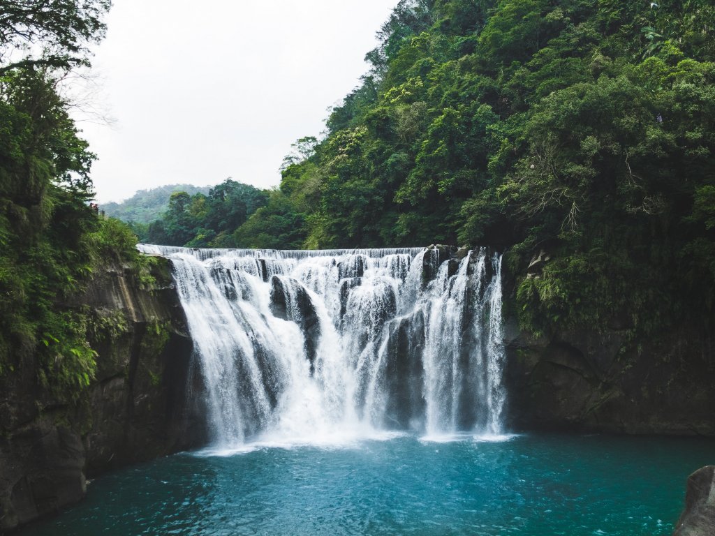Обои: водопад, река, растительность - 1024x768