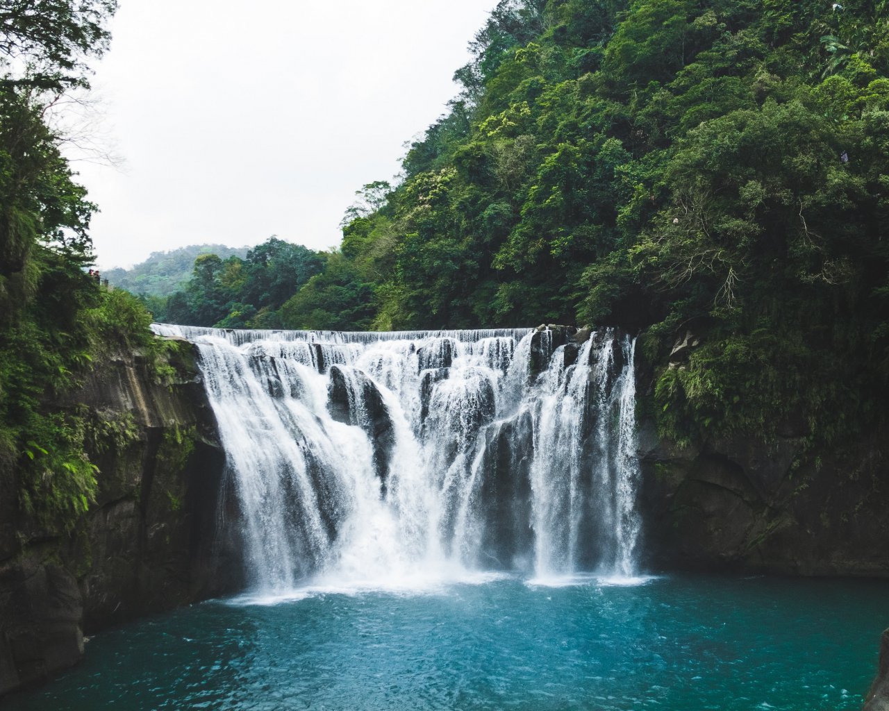 Обои: водопад, река, растительность - 1280x1024