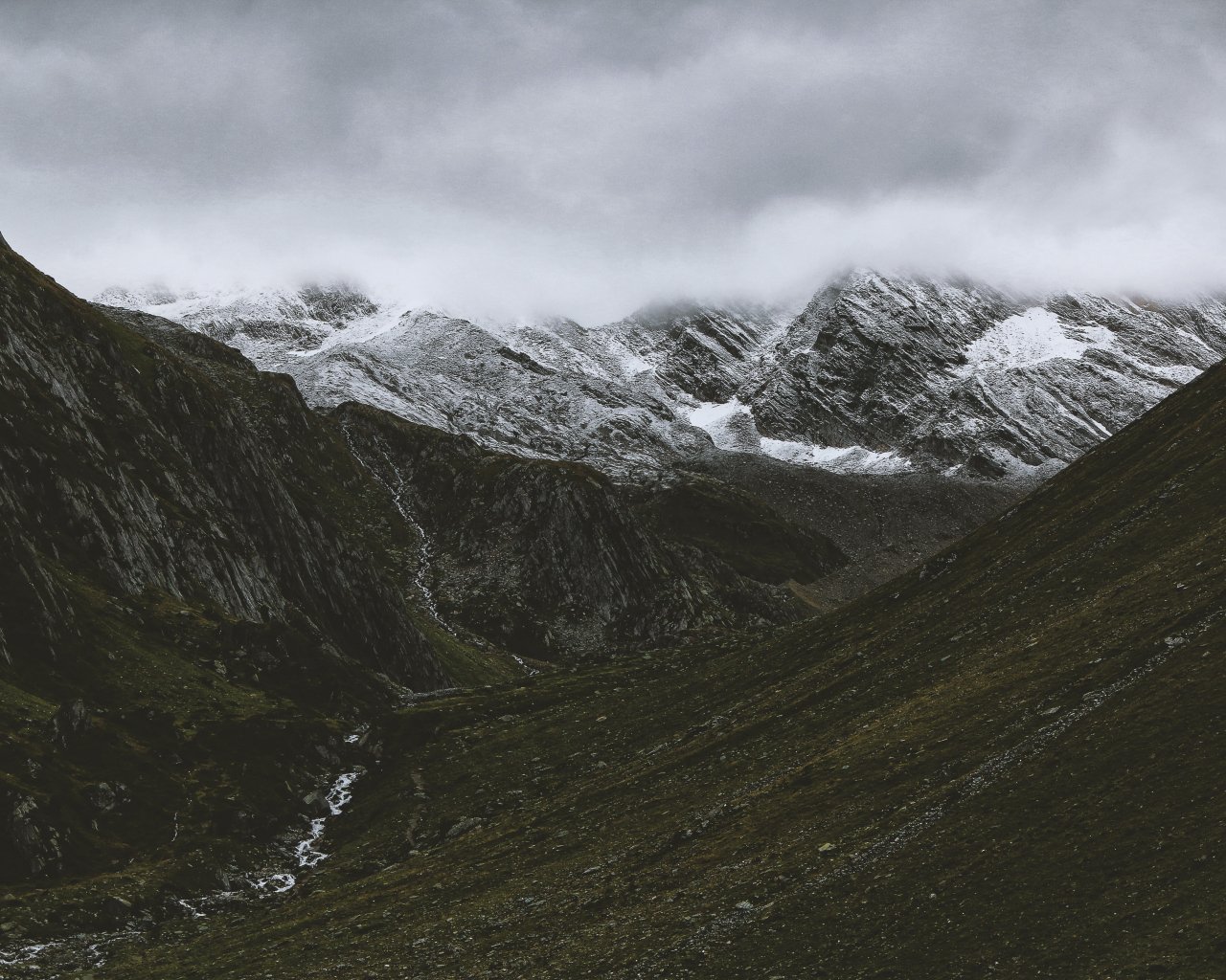 Обои: горы, облака, снег - 1280x1024