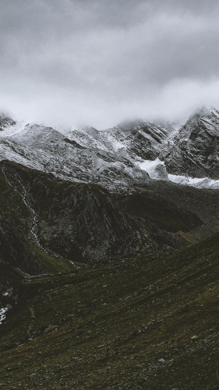 Обои: горы, облака, снег - 750x1334