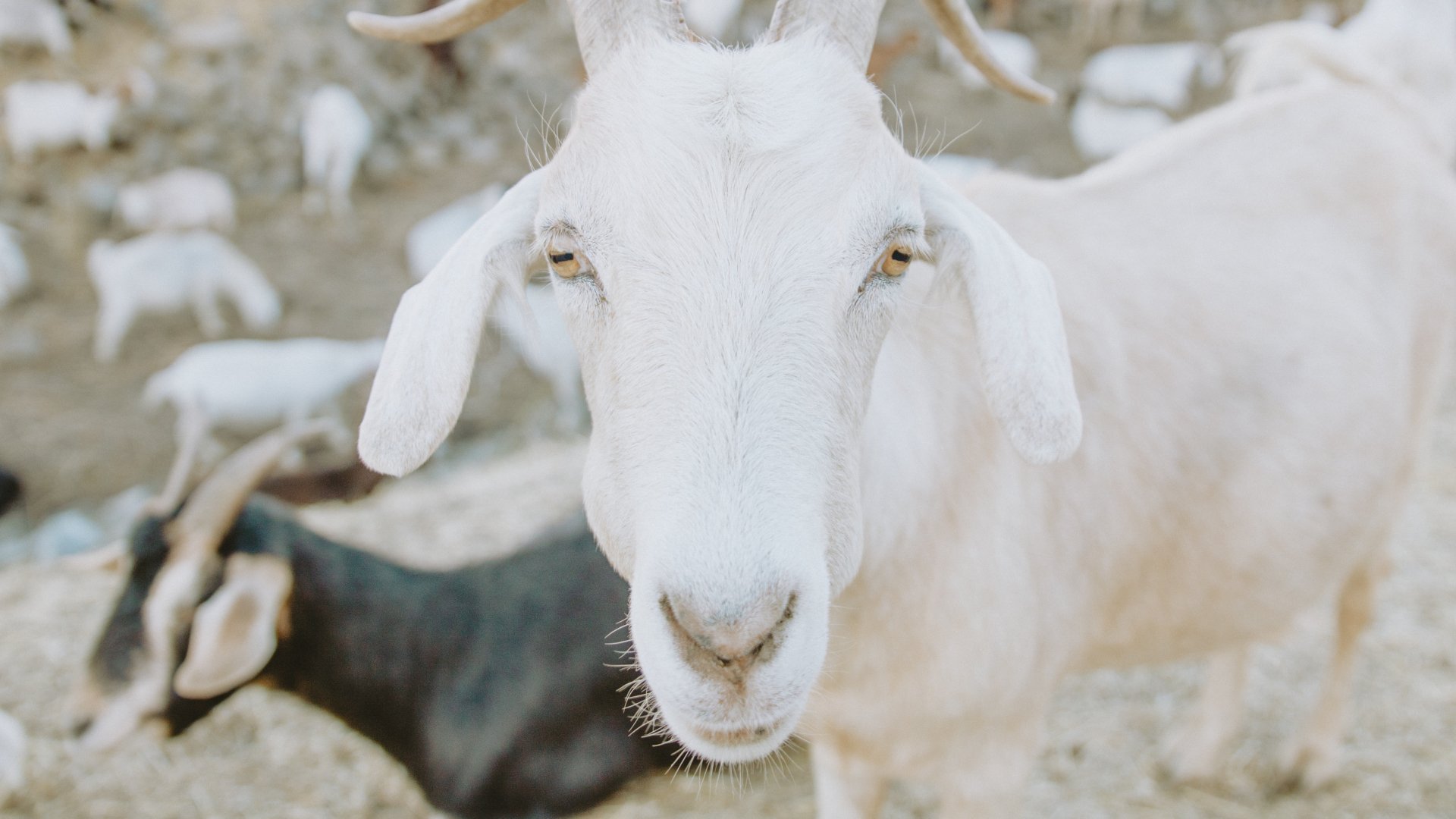 Обои: козел, рога, желтые глаза - 1920x1080