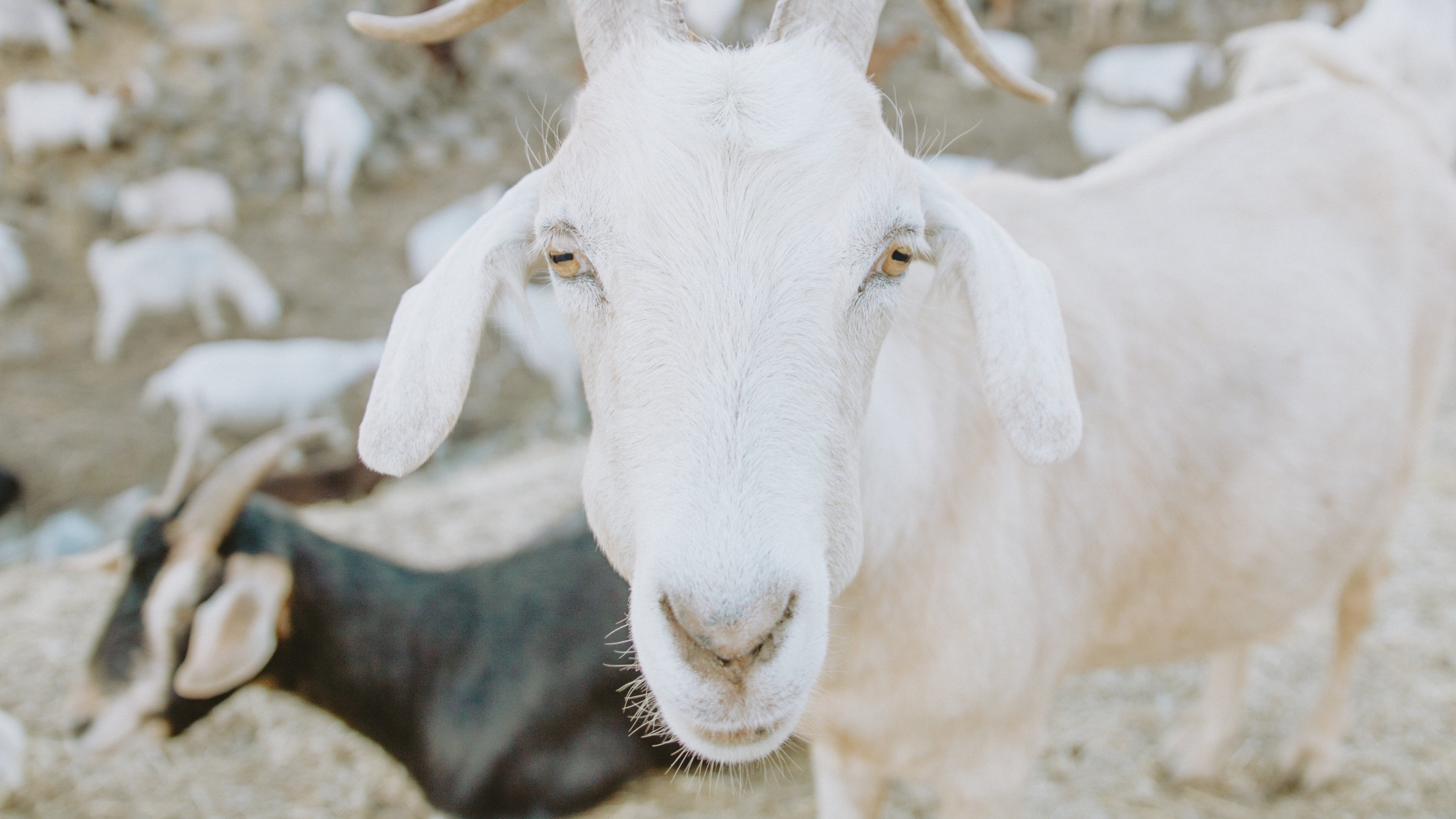 Обои: козел, рога, желтые глаза - 3840x2160