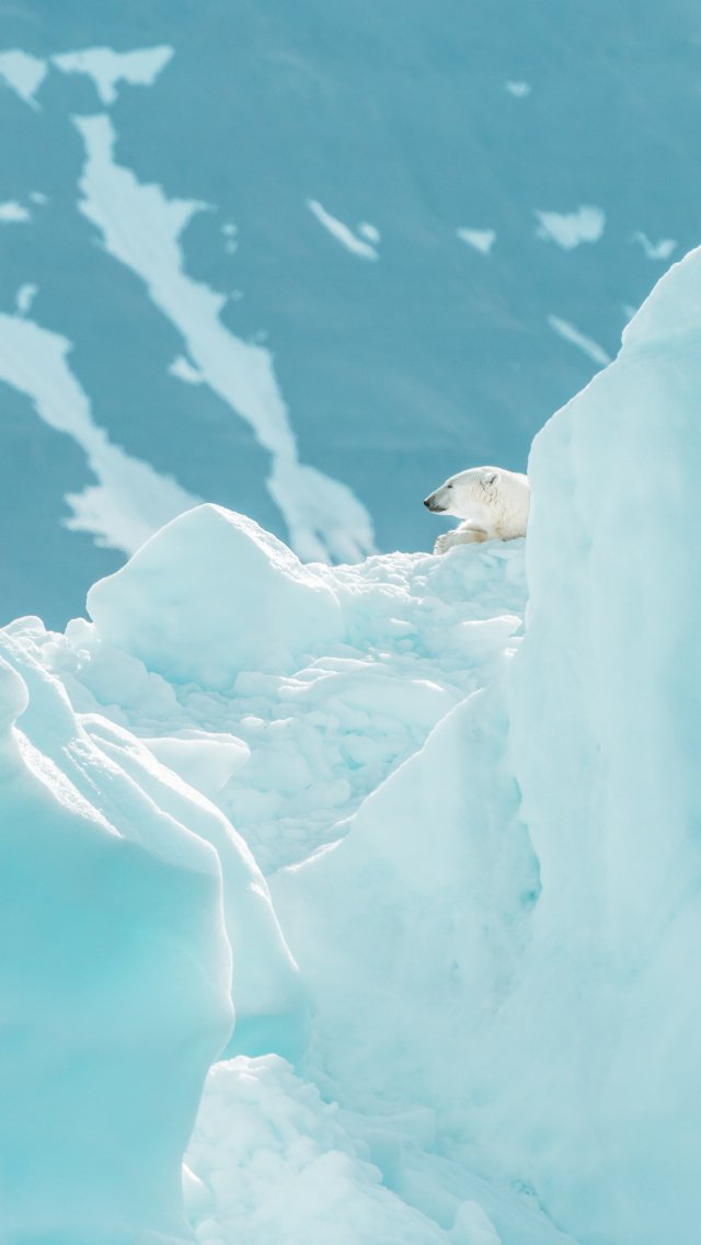 Обои: белый медведь, ледники - 640x1136