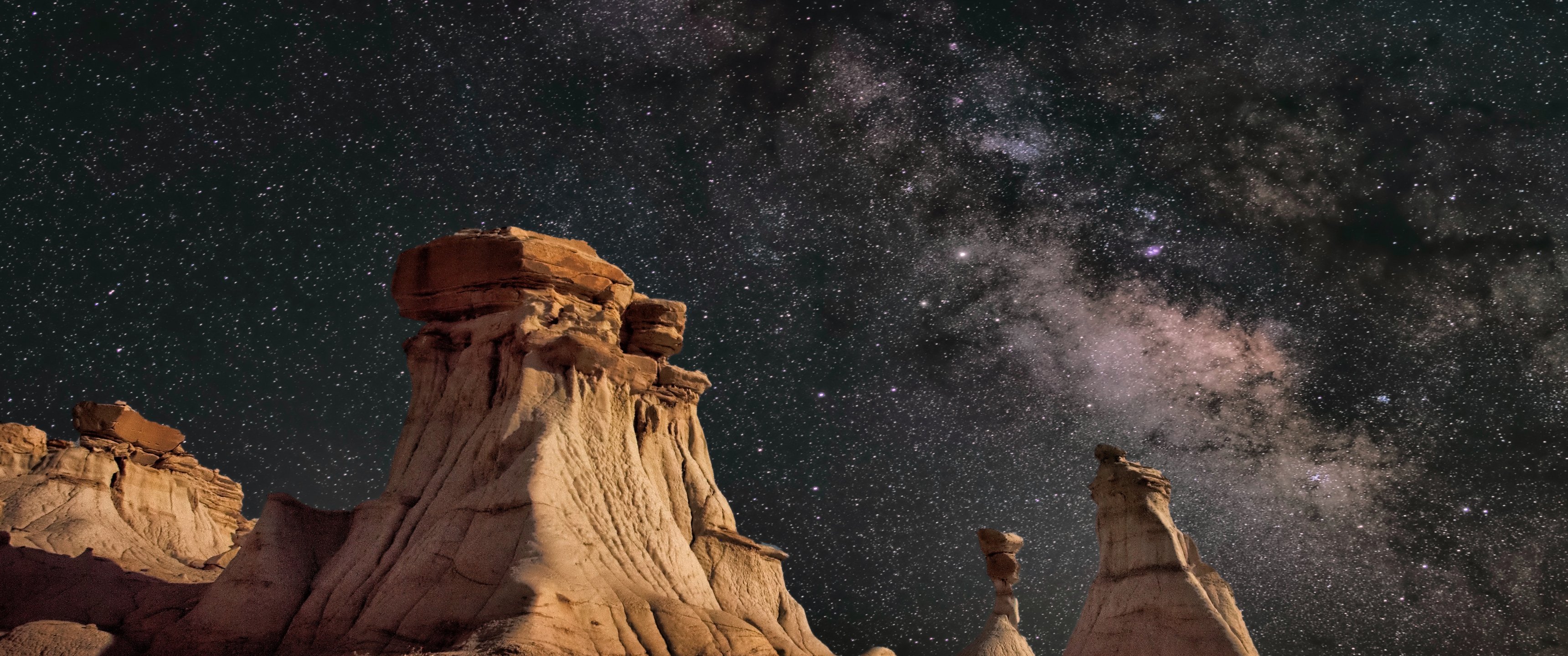 Обои: млечный путь, скалы - 3440x1440